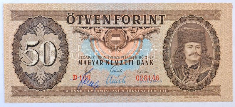Leírás: 1965. 50Ft mindhárom rajta szereplő név aláírásával T:I,I-