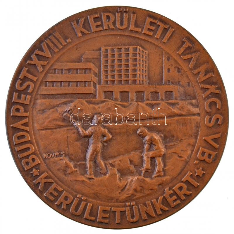 ~1980. "Budapest XVIII. Kerületi Tanács VB. - Kerületünkért"... https://www.darabanth.com/hu/308-Gyorsarveres/308.0/Numizmatika/Magyar-emlekveretek-plakettek~300009/7E1980-Budapest-XVIII-Keruleti-Tanacs-VB--Keruletunkert-Br-emlekerem-Szign-Kovacs-7~II1652270