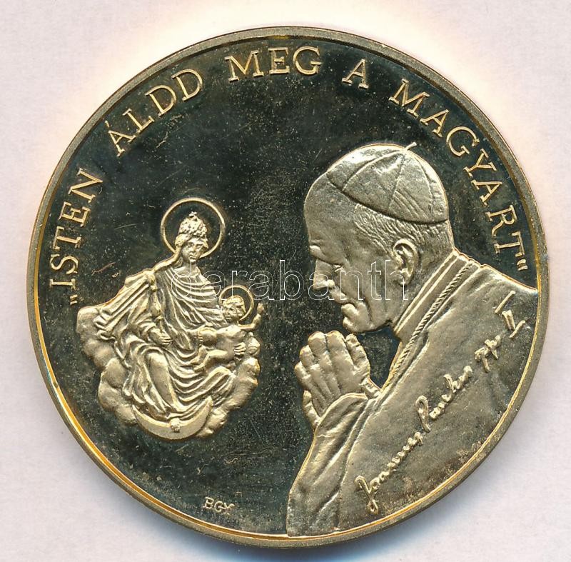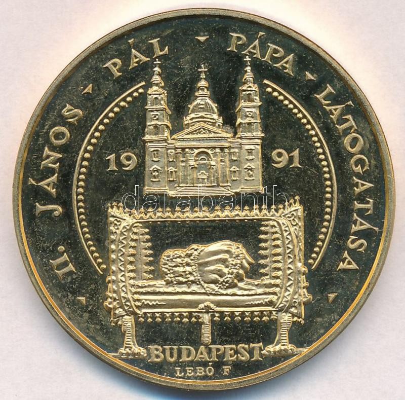 Leírás: Bognár György (1944-) / Lebó Ferenc (1960-) 1991. "II. János Pál pápa látogatása - Budapest" aranyozott fém emlékérem (42mm) T:1(PP)