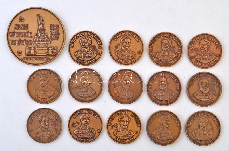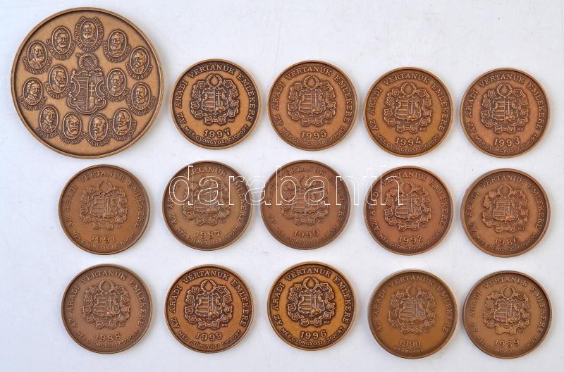 Bognár György (1944-) 1986-1999. "MÉE Gyöngyösi Csoport - Aradi Vértanúk" 15db-os Br emlékérem teljes szett, a záróéremmel együtt, a "Kazinczy Lajos" érem piefort T:1,1-