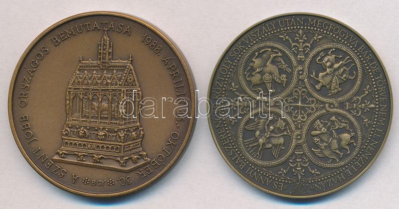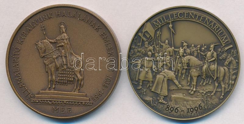 Bognár György (1944-) 1988. "MÉE - Államalapító királyunk emlékére / A Szent Jobb országos bemutatása" Br emlékérem (42,5mm) + 1996. "Millecentenárium" Br emlékérem (42,5mm) T:1,1-