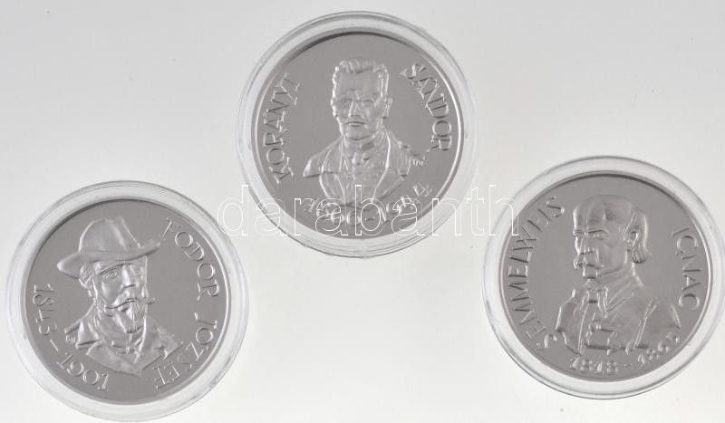 Kiss Nagy András (1930-1997) 1997. "Orvos sor / Semmelweis Ignác, Fodor József és Korányi Sándor" jelzett Ag emlékérmek eredeti adományozói dísztokban, tanúsítvánnyal (11g/0.925/32mm) T:PP