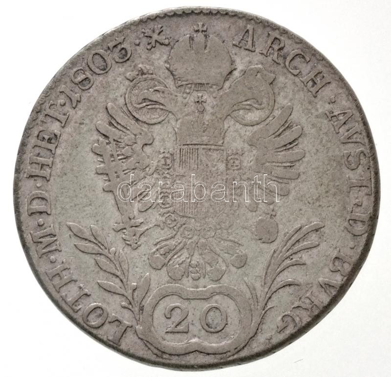 Hungary 1803E 20 Kr... https://www.darabanth.com/hu/308-Gyorsarveres/308.0/Numizmatika/Magyar-es-magyar-verdejelu-fem-es-ezustpenzek~300008/1803E-20kr-Ag-I-Ferenc-6-5g-T2-3--Hungary-1803E-20-Kreuzer-Ag-Franz-I-6-5g-CVF-F--Husza~II1640252