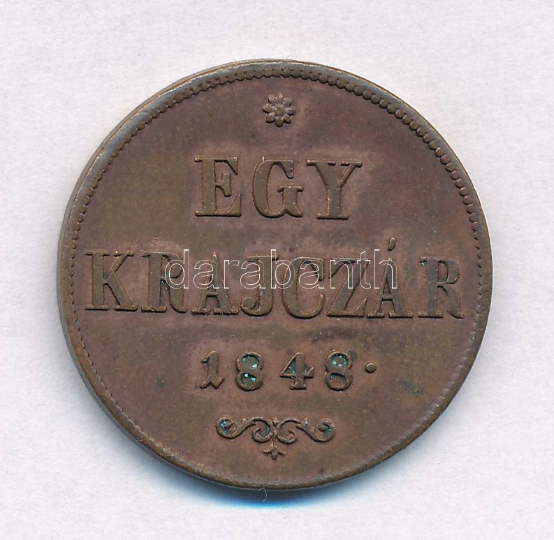 Adamo B1 https://www.darabanth.com/hu/308-Gyorsarveres/308.0/Numizmatika/Magyar-es-magyar-verdejelu-fem-es-ezustpenzek~300008/1848-1kr-Cu-T1-2---Adamo-B1~II1672177