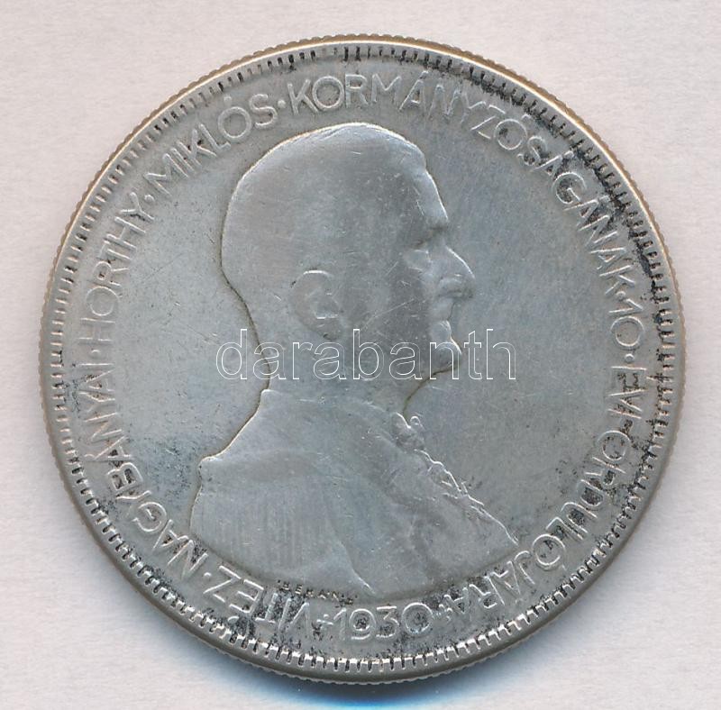 Leírás: 1930. 5P Ag "Horthy jobbra" T:2-,3
