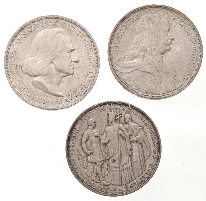 1935. 2P Ag "Pázmány" + 2P Ag "Rákóczi" + 1936. 2P... https://www.darabanth.com/hu/308-Gyorsarveres/308.0/Numizmatika/Magyar-es-magyar-verdejelu-fem-es-ezustpenzek~300008/1935-2P-Ag-Pazmany-plus-2P-Ag-Rakoczi-plus-1936-2P-Ag-Liszt-Ferenc-T1-2-patina---Adamo-P71-~II1669725