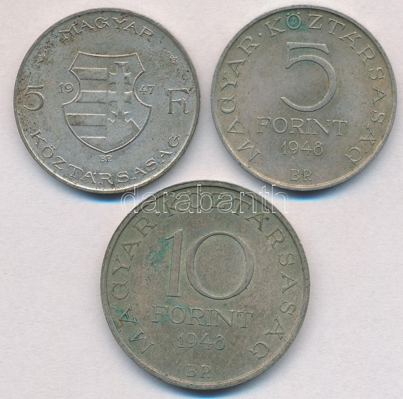Leírás: 1947. 5Ft Ag "Kossuth" + 1948. 5Ft Ag "Petőfi" + 10Ft Ag "Széchenyi" T:2 patina