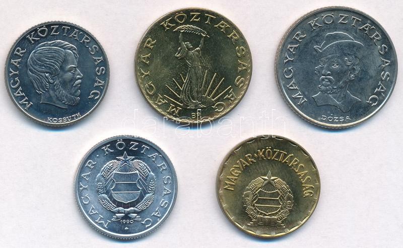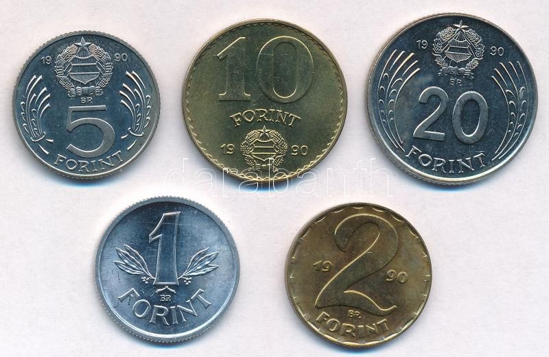 Leírás: 1990. 1Ft-20Ft 5xklf db, kiadatlan forgalmi sor, "Magyar Köztársaság" felirattal, de "Kádár" címerrel T:1