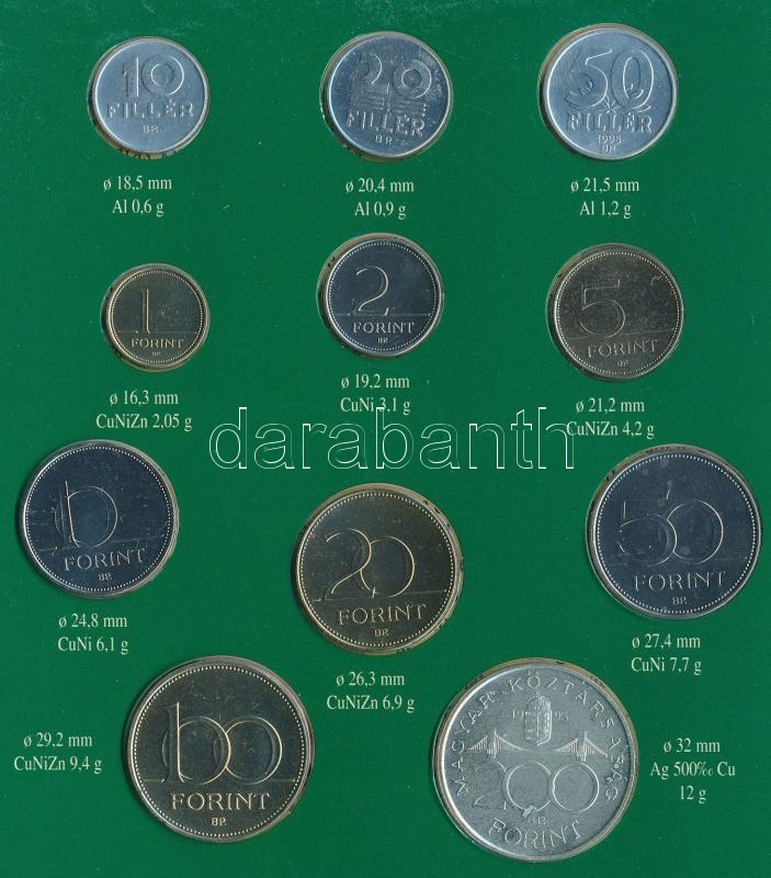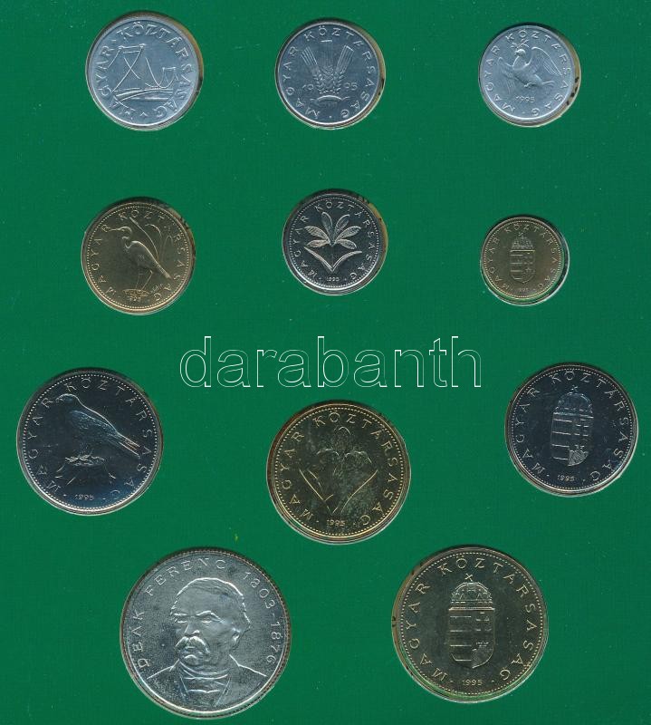 1995. 10f-200Ft (11xklf) forgalmi sor dísztokban, benne 200Ft Ag "Deák", "Magyarország pénzérméi" sorozat T:BU a külső karton védőtok hiányzik