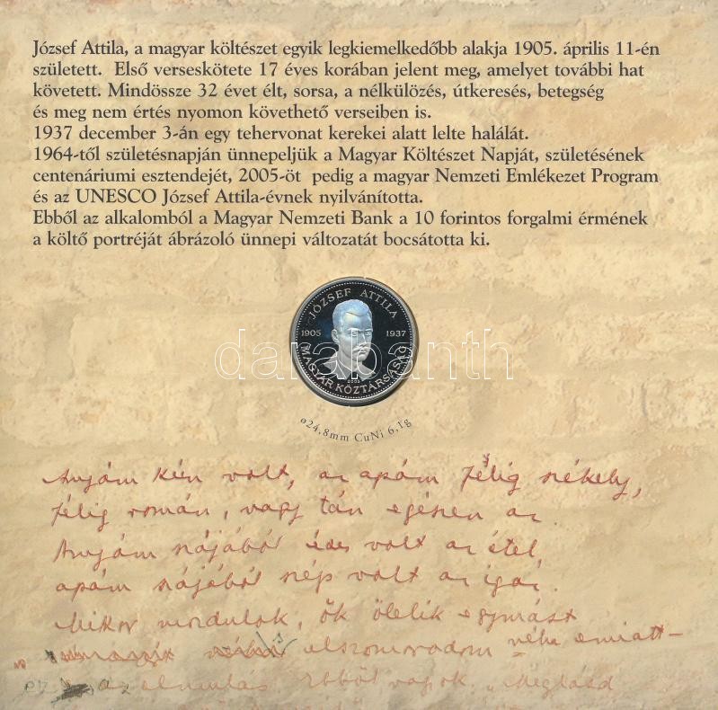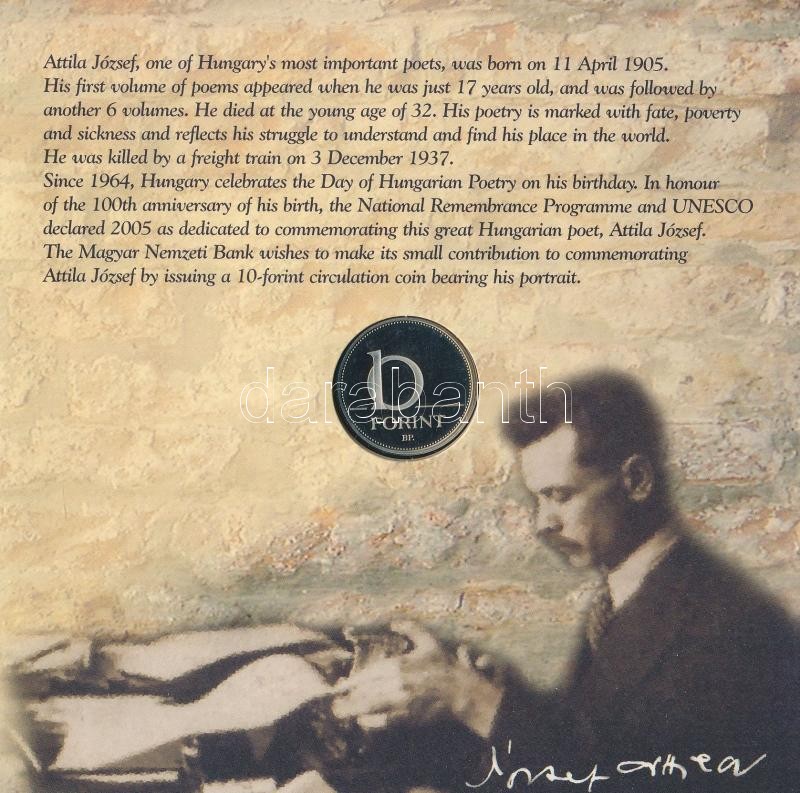 Leírás: 2005. 1Ft-100Ft (7xklf) forgalmi sor szettben + 2005. 10Ft "József Attila" T:PP Adamo FO39.1