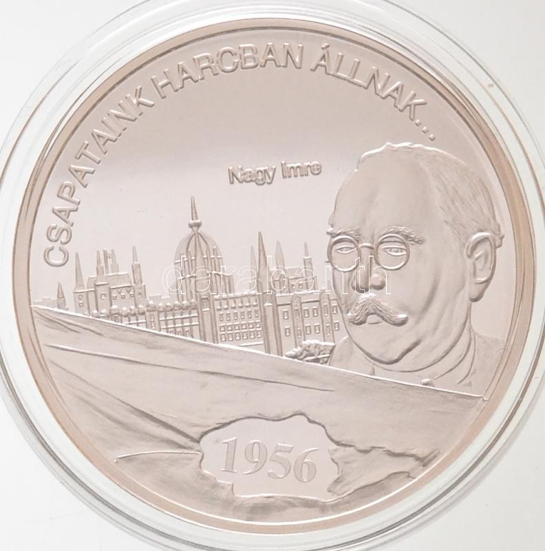 DN "Nemzetünk Nagyjai - Csapataink harcban állnak... - Nagy Imre / Isten áldd meg a magyart!" Ag emlékérem tanúsítvánnyal (10,37g/0.999/35mm) T:PP felületi karc, fo.