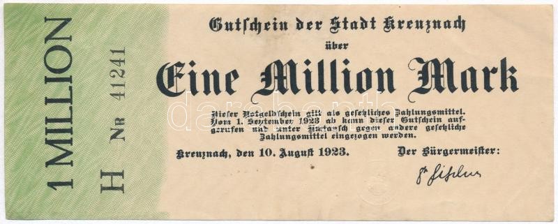 Leírás: Németország / Weimari Köztársaság / Kreuznach 1923. 1.000.000M szükségpénz vízjeles papíron, szárazpecséttel T:III
