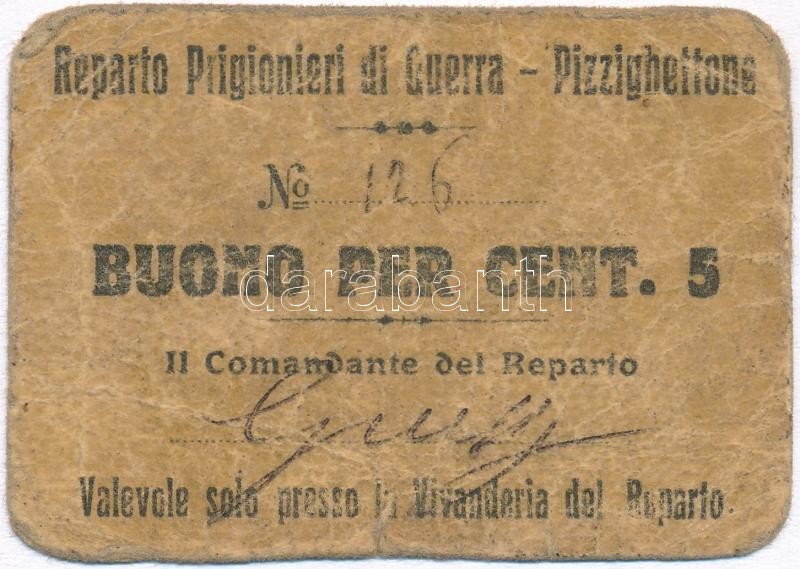 Olaszország / Pizzighettone / Hadifogolytábor ~1916-1918. 5c kézi sorszámozással és aláírással T:III kis szakadás