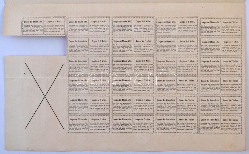 Leírás: Deés 1880. "Szamosvölgyi Vasút-Társaság" egész törzsrészvénye 500Ft-ról, magyar, osztrák és francia nyelven, szárazpecséttel és szelvényekkel T:III