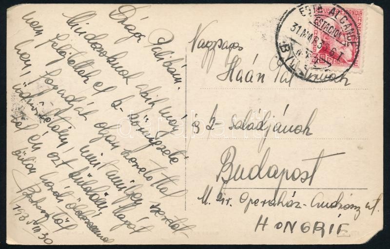 Leírás: 1935 Berkessy Elemér (1905-1993) válogatott labdarúgó saját kézzel írt képeslapja