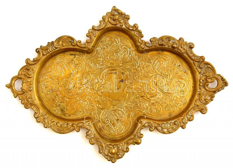 Leírás: Díszes réz kínáló tálca, 30×21,5 cm