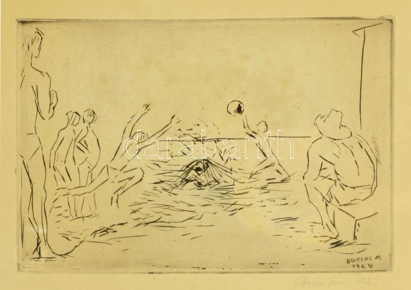 Borsos Miklós (1906-1990): Csobbanás. Rézkarc, papír, jelzett, üvegeze... https://www.darabanth.com/hu/309-Gyorsarveres/309.0/Festmeny-mutargy-papirregiseg-egyeb/Festmenyek-es-grafikak~1/Borsos-Miklos-1906-1990-Csobbanas-Rezkarc-papir-jelzett-uvegezett-keretben-19-5C39729-cm~II1682828