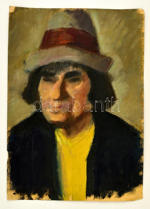 Leírás: Somlai Vilma (1938-2007): Idős hölgy portréja. Pasztell, papír, hátoldalán jelzett, szakadással, 42×30 cm