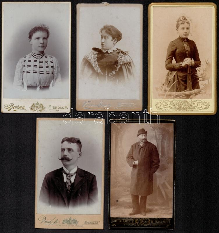 cca 1890 Öt különböző, miskolci műteremben készült, vizitkártya méretű... https://www.darabanth.com/hu/309-Gyorsarveres/309.0/Festmeny-mutargy-papirregiseg-egyeb/Foto~28/cca-1890-Ot-kulonbozo-miskolci-muteremben-keszult-vizitkartya-meretu-fenykep-10-5x6-~II1678713
