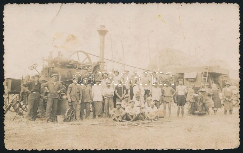 cca 1900-1920 Aratók cséplőgéppel,fotólap, 8x13 cm. https://www.darabanth.com/hu/309-Gyorsarveres/309.0/Festmeny-mutargy-papirregiseg-egyeb/Foto~28/cca-1900-1920-Aratok-cseplogeppel-fotolap-8x13-cm~II1686263