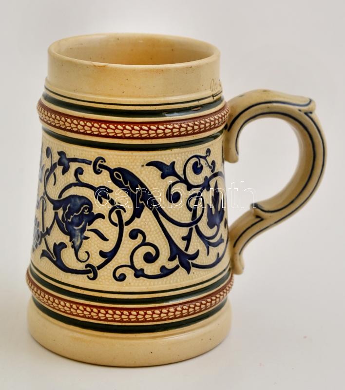 Leírás: Jelzett mázas söröskorsó, hibátlan, m:11 cm