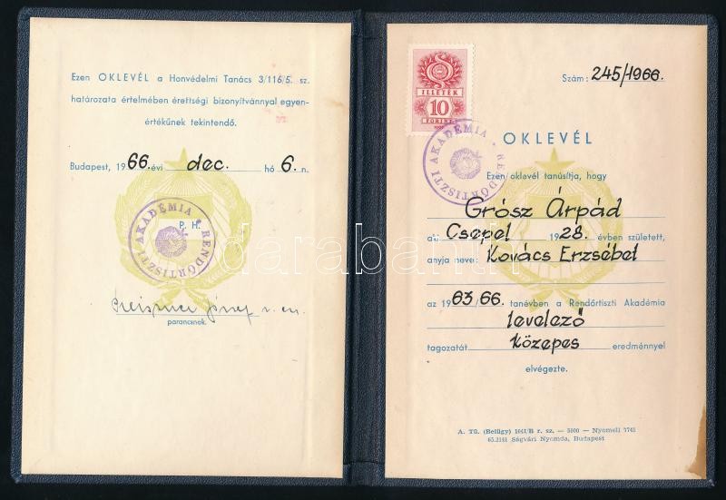 1966, 2005 A Rendőrtiszti Akadémia által kiállított oklevél + meghívó ... https://www.darabanth.com/hu/309-Gyorsarveres/309.0/Festmeny-mutargy-papirregiseg-egyeb/Okmanyok~16/1966-2005-A-Rendortiszti-Akademia-altal-kiallitott-oklevel-plus-meghivo-nyugdijas-talalkozo~II1683930
