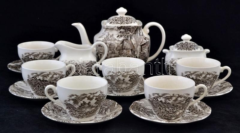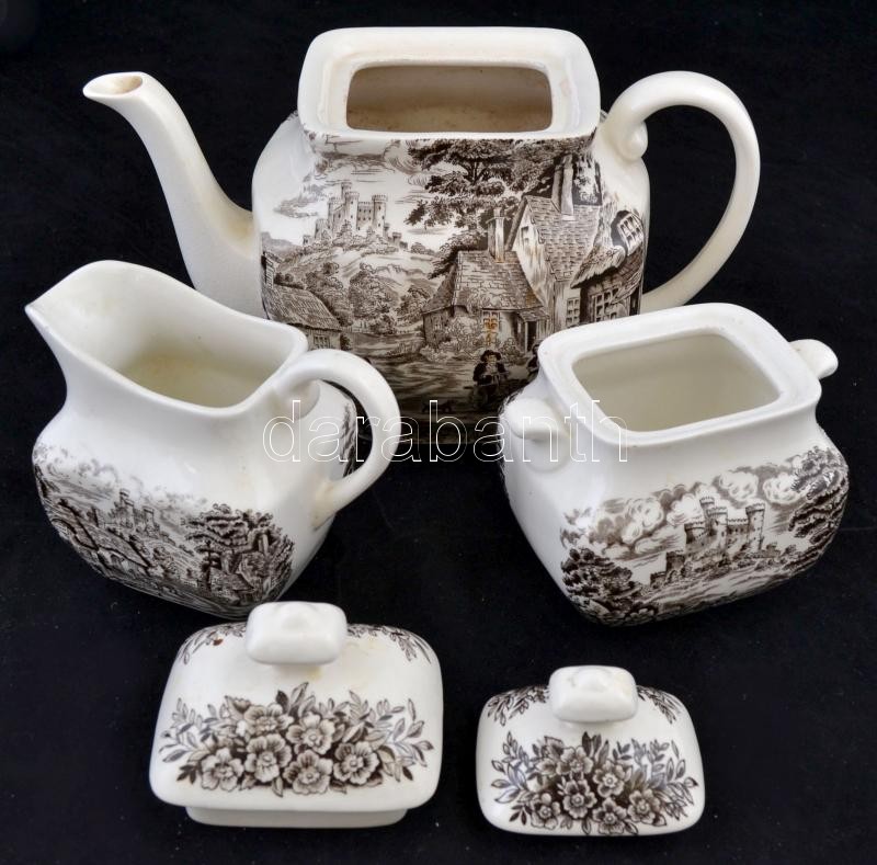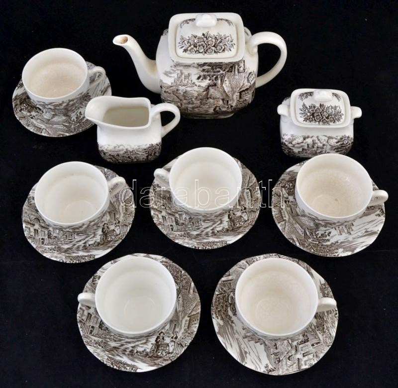 Leírás: England teás készlet, levonóképes, néhányon hajszál repedéssel, jelzett
