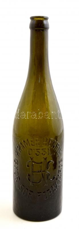 Leírás: Krämer Henrik Győr sör főraktáros feliratú sörösüveg, hibátlan, 0,55L, m: 29 cm