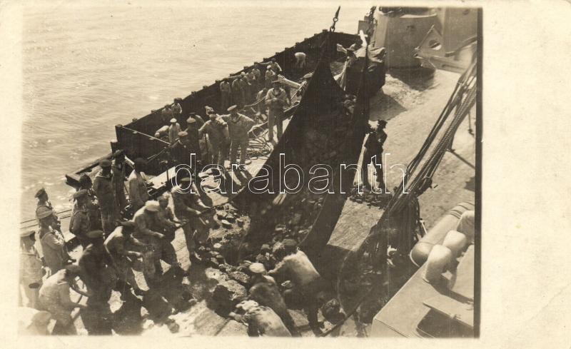 A kazánokat ellátó szén beemelése a hajóra, matrózok szénrakodás közbe... https://www.darabanth.com/hu/309-Gyorsarveres/309.0/Kepeslapok/Hadihajo~300065/A-kazanokat-ellato-szen-beemelese-a-hajora-matrozok-szenrakodas-kozben-KuK-Kriegsmar~II1686272