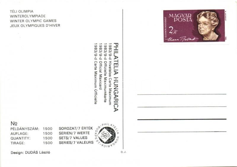 Leírás: 2 db modern téli olimpiai művészi képeslap. Philatelia Hungarica / 2 modern winter olympics postcards. Limited edition art postcads s: Dudás L.