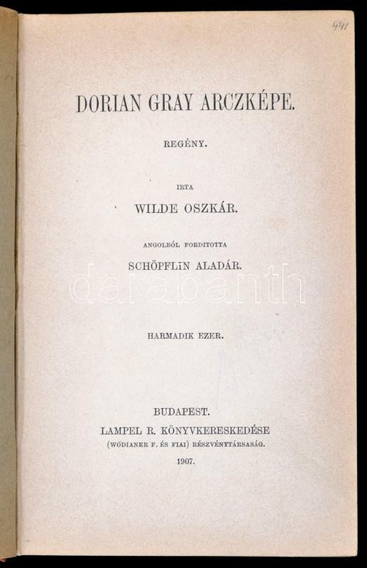 Wilde Oszkár: Dorian Gray arcképe. Fordította Schöpflin Aladár. Budapest, 1907, Lampel R. (Wodianer F. és Fiai) Rt. Korabeli félvászon kötésben, jó állapotban
