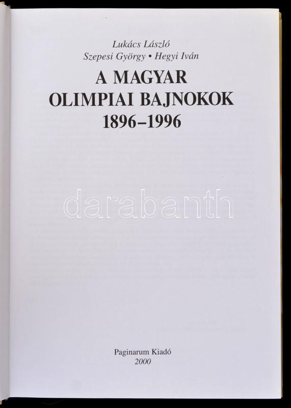 Leírás: Lukács László et al.: A magyar olimpiai bajnokok 1896-1996. Bp., 2000, Paginarum. Kartonált papírkötésben, jó állapotban.
