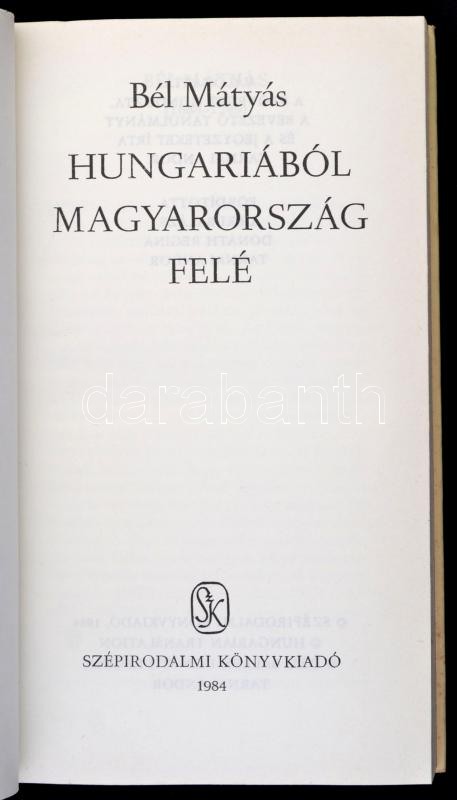 Bél Mátyás: Hungariából Magyarország felé. Magyar Ritkaságok. Bp., 1984, Szépirodalmi. Kiadói kartonált papírkötésben, kiadói papír védőborítóval, jó állapotban.