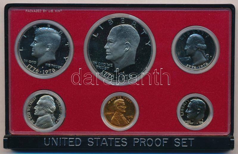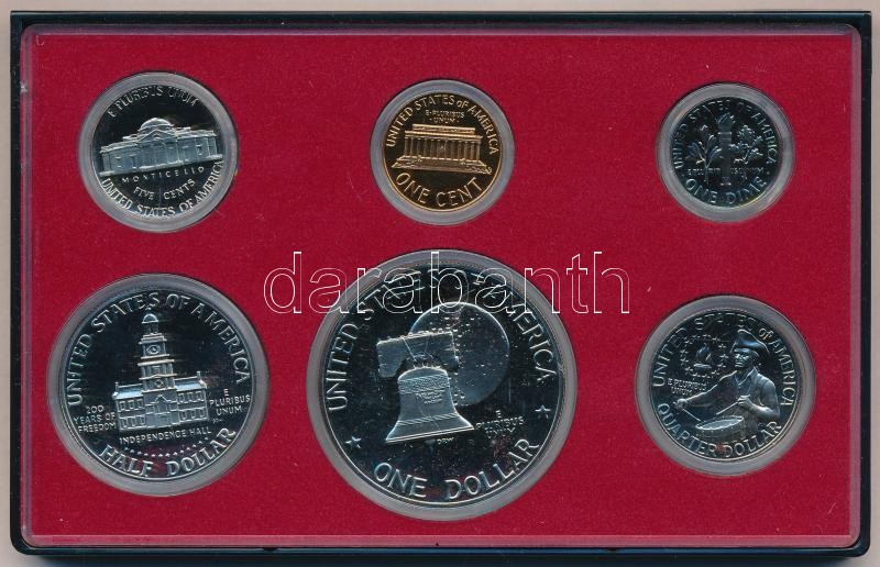 Amerikai Egyesült Államok 1976S 1d-1$ (6xklf) dísztokos szettben T:PP tok sérült