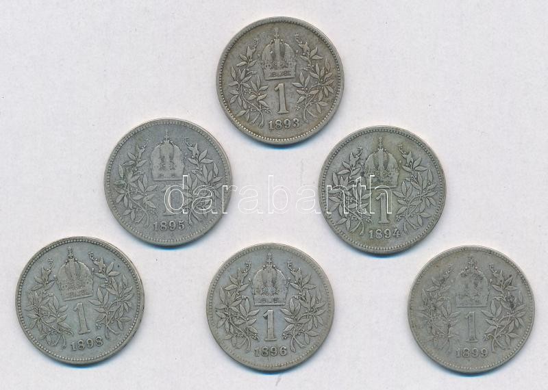 Ausztria 1893-1899. 1K Ag "Ferenc József" (6xklf) T:2-,3
