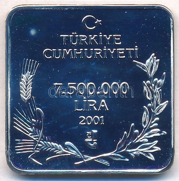 Leírás: Törökország 2001. 7.500.000L Ag "Kékcsőrű réce" T:PP fo. / Turkey 2001. 7.500.000 Lira Ag "White-headed duck" C:PP spotted