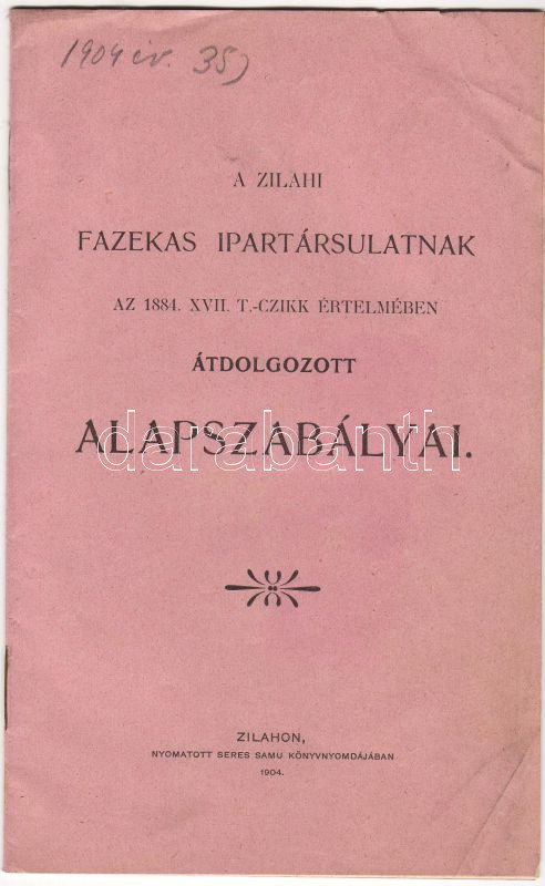 1904 A Zilahi Fazekas Ipartársulat alapszabályai; Seres Samu nyomdája https://www.darabanth.com/hu/31-Gyorsarveres/31.0/Festmeny-mutargy-papirregiseg-egyeb/Nyomtatvanyok~196/1904-A-Zilahi-Fazekas-Ipartarsulat-alapszabalyai-Seres-Samu-nyomdaja~II59142