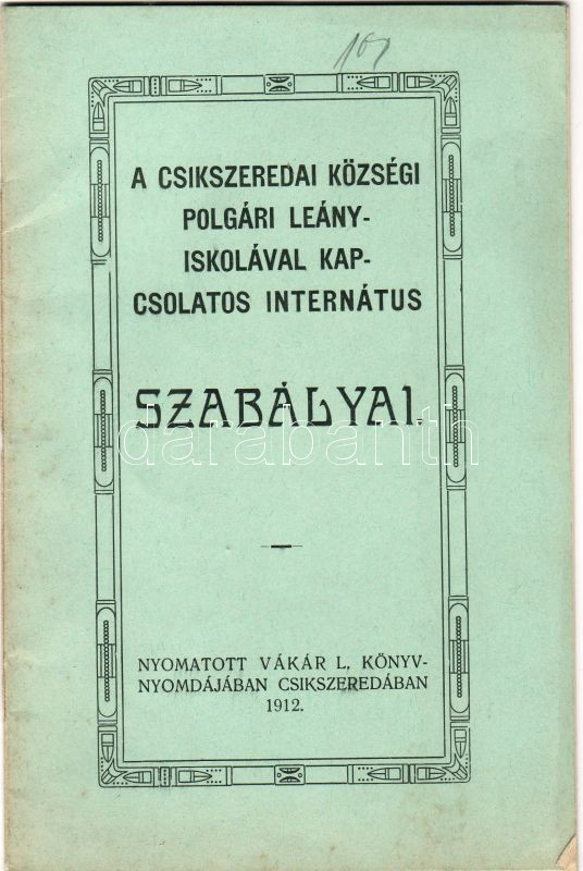 1912 A Csíkszereda községi leányiskolával kapcsolatos internátus szabá... https://www.darabanth.com/hu/31-Gyorsarveres/31.0/Festmeny-mutargy-papirregiseg-egyeb/Nyomtatvanyok~196/1912-A-Csikszereda-kozsegi-leanyiskolaval-kapcsolatos-internatus-szabalyai-Vakar-L-nyomdC3~II59157