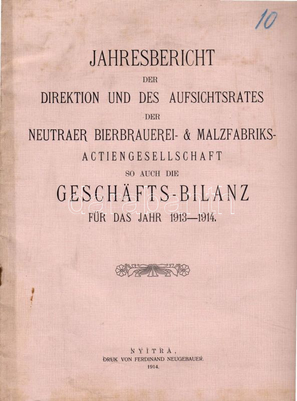 1914 A Nyitrai Sörfőzde és Malátagyár üzleti jelentése német nyelven; ... https://www.darabanth.com/hu/31-Gyorsarveres/31.0/Festmeny-mutargy-papirregiseg-egyeb/Nyomtatvanyok~196/1914-A-Nyitrai-Sorfozde-es-Malatagyar-uzleti-jelentese-nemet-nyelven-Ferdinand-Neugebauer-n~II59118