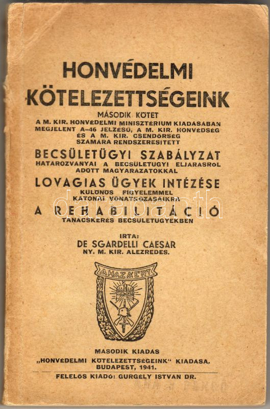 Leírás: 1941 Honvédelmi kötelezezettségeink (Becsületügyi szabályzat, lovsgias ügyek intézése)