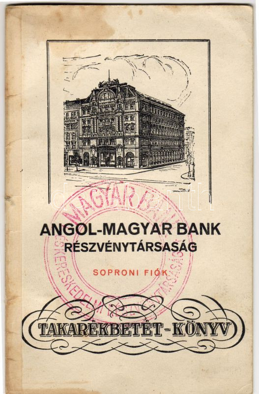 Angol-magyar bank takarékbetétkönyv 1939.Sopron https://www.darabanth.com/hu/31-Gyorsarveres/31.0/Festmeny-mutargy-papirregiseg-egyeb/Nyomtatvanyok~196/Angol-magyar-bank-takarekbetetkonyv-1939Sopron~II49451