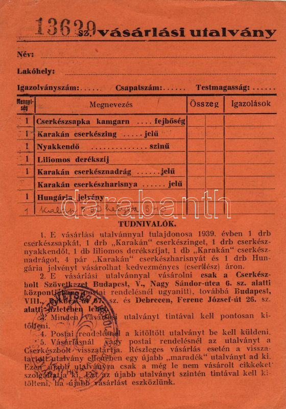 Cserkészbolt vásárlási utalvány pecséttel https://www.darabanth.com/hu/31-Gyorsarveres/31.0/Festmeny-mutargy-papirregiseg-egyeb/Nyomtatvanyok~196/Cserkeszbolt-vasarlasi-utalvany-pecsettel~II59474