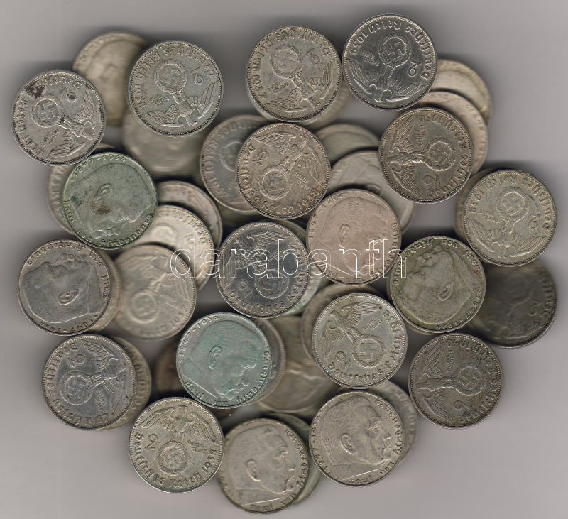 D.Reich 1937-39. 2RM (50x) H.K-tel T:2,2/3 https://www.darabanth.com/hu/31-Gyorsarveres/31.0/Numizmatika/Kulfoldi-fem-es-ezustpenzek-Foreign-metal-and-silvercoins~225/DReich-1937-39-2RM-50x-HK-tel-T2-23~II59464