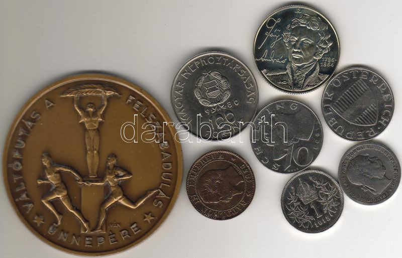 Leírás: Kis tétel, régi és új, 7 pénzérme + 1 bronzplakett T:2,3