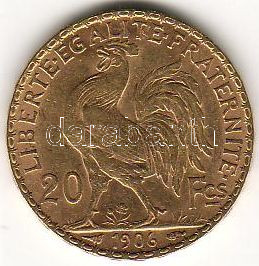 Leírás: Franciaország 1906. "Kakas" 20Fr arany 6,4516 T:2