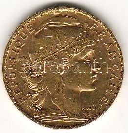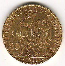 Leírás: Franciaország 1911. "Kakas" 20Fr arany 6,4516 T:2