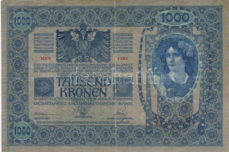 1902. 1000K piros "Magyarország" fny-sal T:II/III https://www.darabanth.com/hu/31-Gyorsarveres/31.0/Numizmatika/Magyar-es-kulfoldi-bankjegyek-Hungarian-and-foreign-banknotes~222/1902-1000K-piros-Magyarorszag-fny-sal-TIIIII~II59321