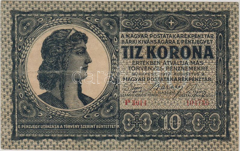 1919. 10K 2.kiadás T:II-/III+ https://www.darabanth.com/hu/31-Gyorsarveres/31.0/Numizmatika/Magyar-es-kulfoldi-bankjegyek-Hungarian-and-foreign-banknotes~222/1919-10K-2kiadas-TII-IIIplus~II59414
