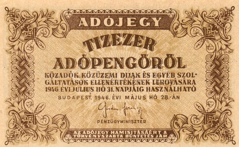 Leírás: 1946. 10.000Adóp. vízjeles, számozás nélkül T:I