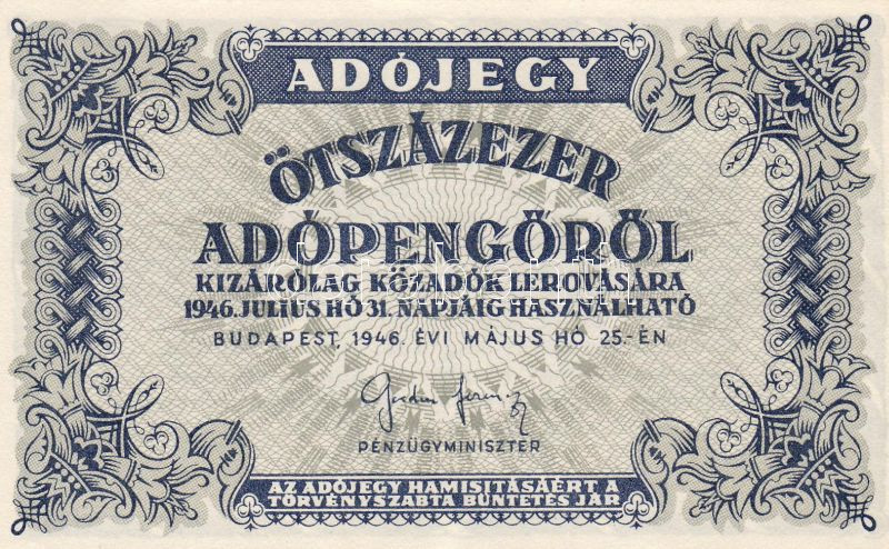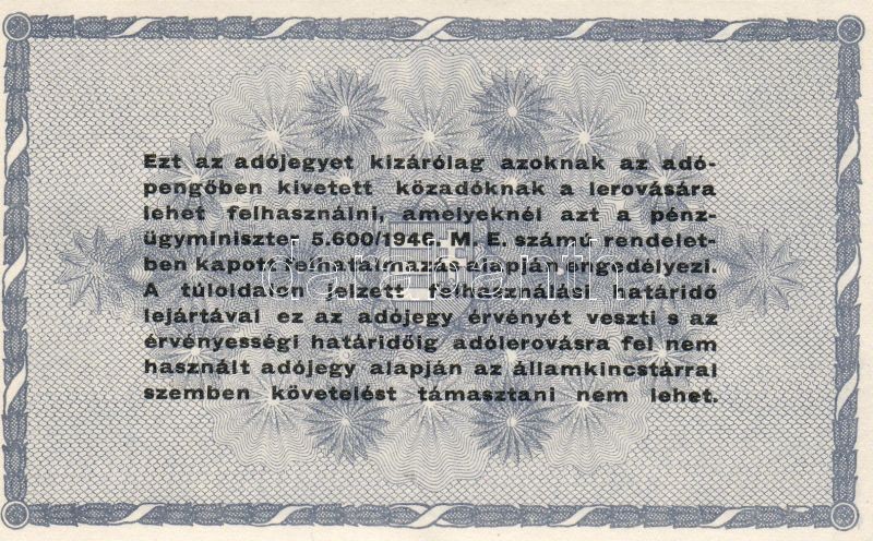 Leírás: 1946. 500.000Adóp. fehér, vízjel nélküli papíron, számozás nélkül T:I
